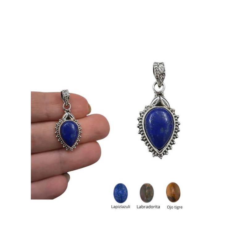 COLGANTE PLATA DE LEY LAGRIMA INVERTIDA FILIGRANA ALREDEDOR DOS PIEDRAS A ELEGIR