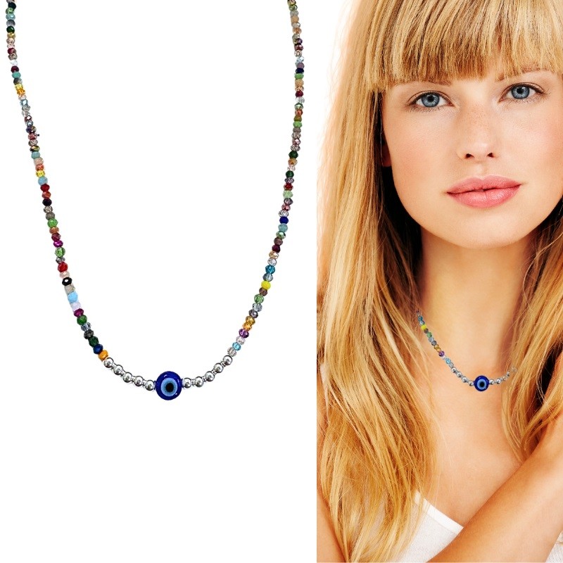 GARGANTILLA COLLAR PLATA DE LEY Y PIEDRAS COLORES OJO TURCO CENTRAL