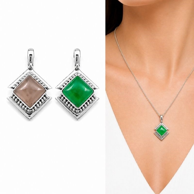 COLGANTE PLATA DE LEY PIEDRAS NATURALES TIPO ROMBO, NO INCLUYE CADENA