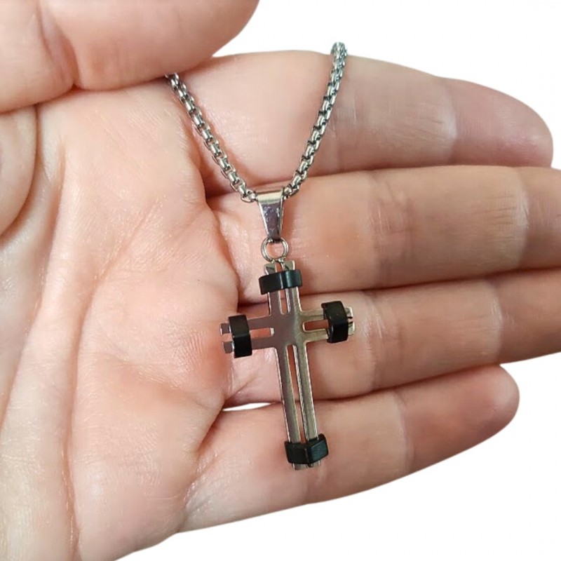 Gargantilla collar fabricado en acero inoxidable, con cruz de 3 cms de alto x 2 cms de ancho y cadena de 50 cms de longitud, con alargador de 5 cms. Se entrega en estuche de regalo. Entregas rápidas en 24-72 horas laborables a península.