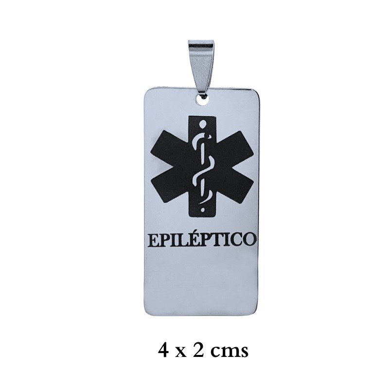 COLGANTE ACERO INOXIDABLE AVISO "EPILÉPTICO" DE 4 X 2 CMS