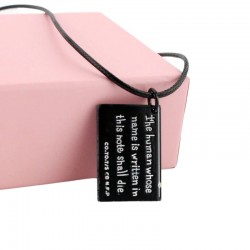Collar fabricado en metal de 2 cms de ancho x 3 cms de alto, lacado en negro, Death note, cuaderno negro. Death Note es una serie de manga escrita por Tsugumi Oba e ilustrada por Takeshi Obata, y cuya adaptación a serie de anime fue dirigida por Tetsuro Araki. Cuenta, además, con varias películas y videojuegos. El collar incluye un cordón de cuero negro de 45 cms. En la parte posterior del colgante aparece una inscripción en inglés: " The human whose name is written in this note shall die". Se entrega empaquetado para regalo.