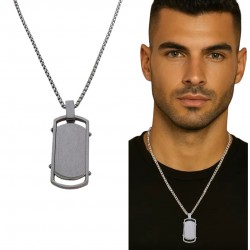 Collar para caballero en acero inoxidable con diseño moderno de placa rectangular, abierta en la parte superior e inferior. Resistente y elegante, ideal para uso diario o como regalo. Se entrega en estuche de presentación. Envío rápido en 24 a 72 horas laborables a península. Envío gratis en compras desde 20 euros. Resto de pedidos: 3 euros.
