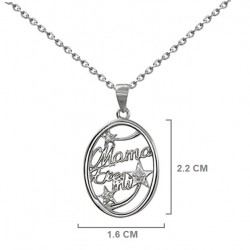 Gargantilla fabricada en plata de ley 925mm, con colgante ovalado calado con la inscripción `` Mama eres mi ´´ y una estrella con circonitas blancas. Incluye cadena de 40CM más 6CM de cadena alargadora para ajustar a cualquier tipo de cuello. Se entrega en estuche de regalo.