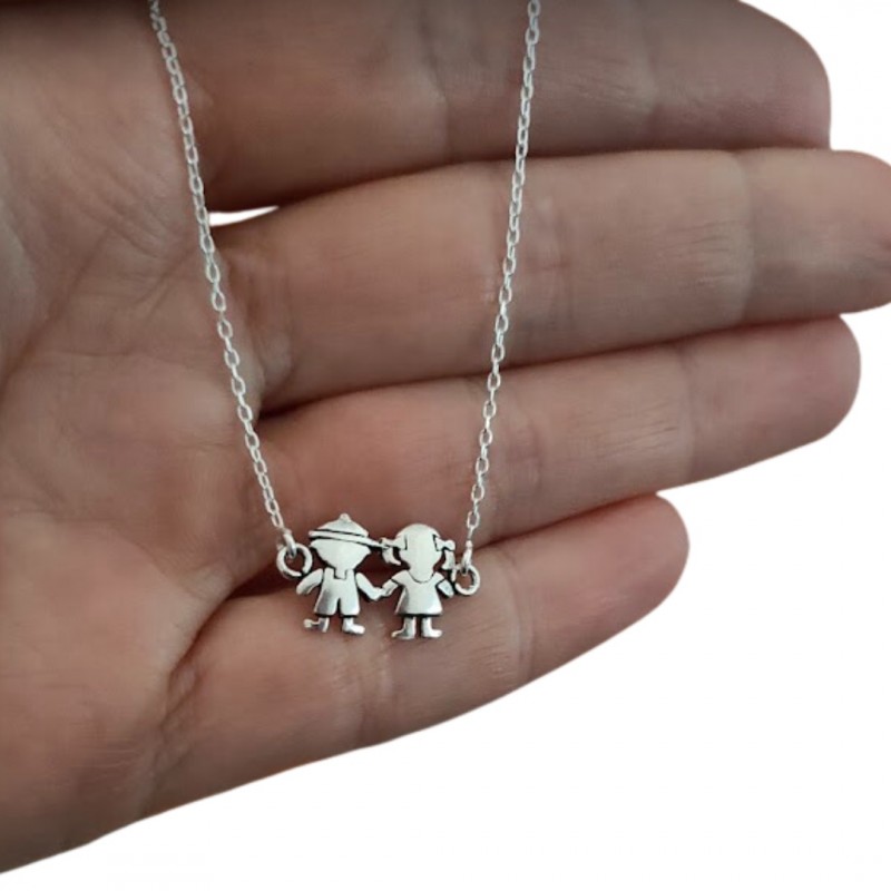 Gargantilla collar fabricado en plata de ley 925 mm, con niño niña central. Cuenta con una longitud total de 38 cms + 4 cms de cadena alargadora, lo que permite su colocación a diferentes alturas en el cuello. Se entrega en estuche de regalo. Entregas rápidas en 24-72 horas laborables a península. Gastos de envíos incluídos en este producto.
