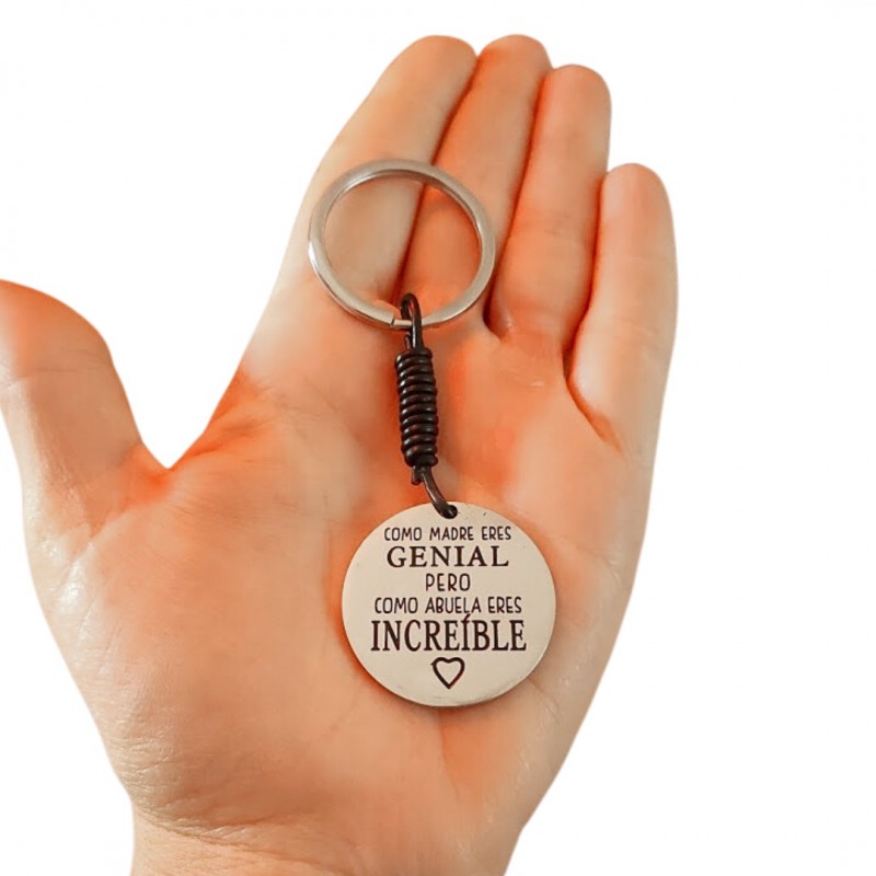 LLAVERO ACERO INOXIDABLE COMO MADRE ERES GENIAL, PERO COMO ABUELA ERES INCREÍBLE