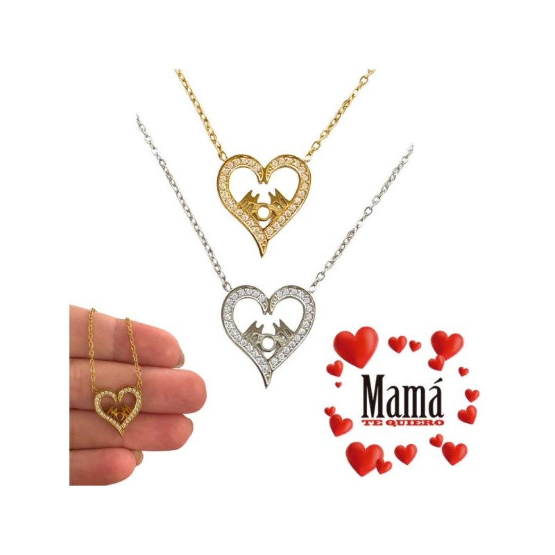 GARGANTILLA ACERO INOXIDABLE ESPECIAL DÍA DE LA MADRE, CORAZÓN CIRCONITAS CON LA PALABA MOM