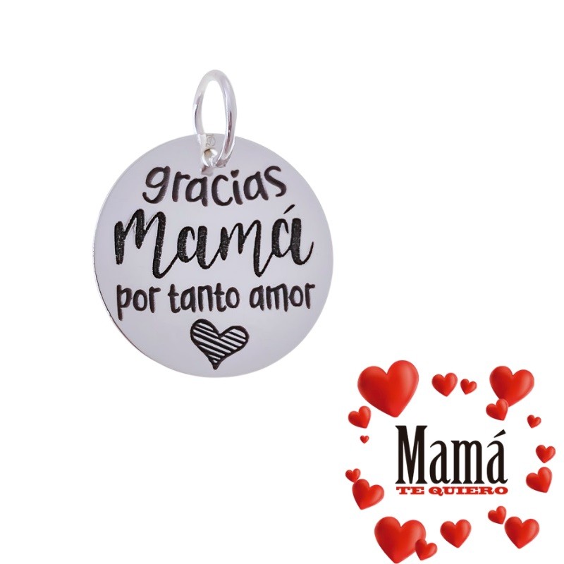 COLGANTE PLATA DE LEY DISCO DE 1.8 CM DIÁMETRO GRACIAS MAMÁ POR TANTO AMOR, ESPECIAL DÍA DE LA MADRE