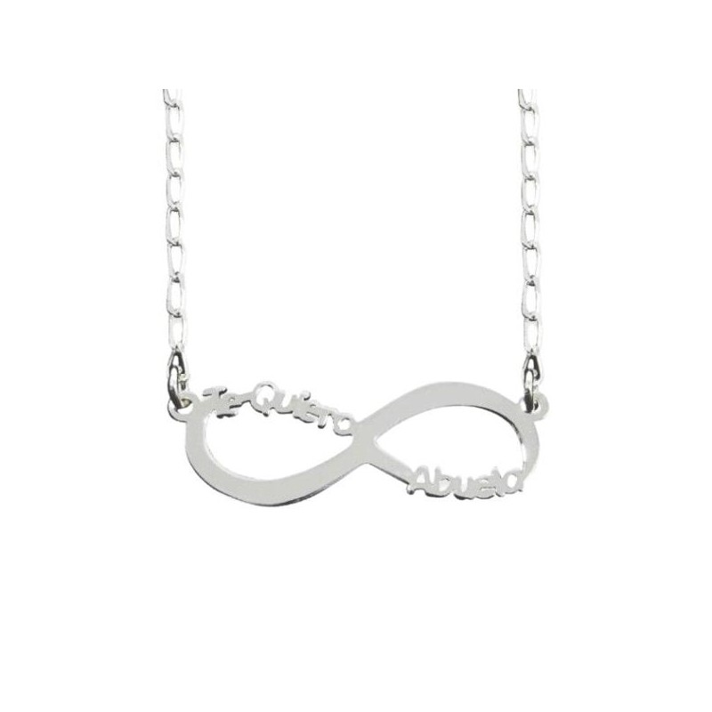 Gargantilla fabricada en plata de ley 925 mm, de 45 cms de longitud, con un infinito central, que figura la frase "Te quiero abuela". Se entrega empaquetada para regalo.