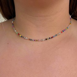 Gargantilla fabricada en plata de ley 925 mm, formada por diferentes piedras naturales facetadas de 2 mm de diámetro, alternando con bolitas de plata de ley de 2 mm y 4 mm. Longitud: 37 cms + 5 cms de cadena alargadora que permite su colocación a diferentes alturas en el cuello. Se entrega en estuche de regalo. Envíos rápidos en 24-48 horas laborables en península.
