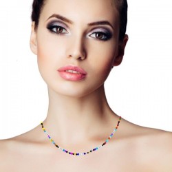Gargantilla collar fabricado en plata de ley 925 mm, formado por piedras de colores y cierre de seguridad mosquetón redondo en plata de ley. Cuenta con una longitud total de 40 cms + 4 cms de cadena alargadora, lo que permite su colocación a diferentes alturas en el cuello. Se entrega en estuche de regalo. Entregas rápidas en 24-72 horas laborables a península.