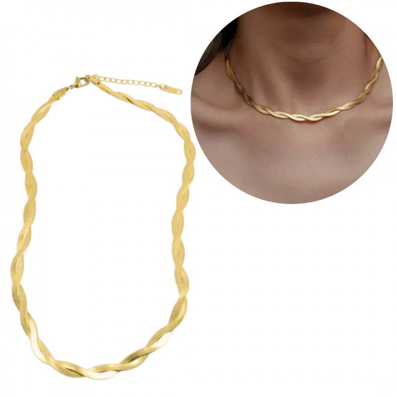 GARGANTILLA ACERO INOXIDABLE BAÑADA ORO 18 K DOS HILOS TRENZADOS PLANOS
