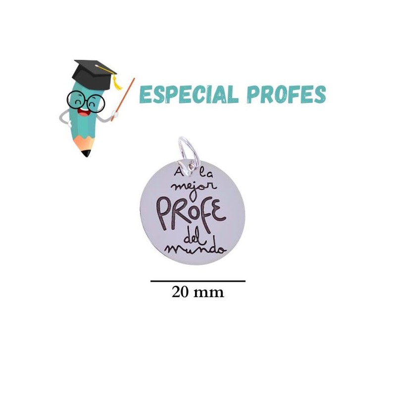 COLGANTE PLATA DE LEY DE 20 MM DIÁMETRO, A LA MEJOR PROFE DEL MUNDO.