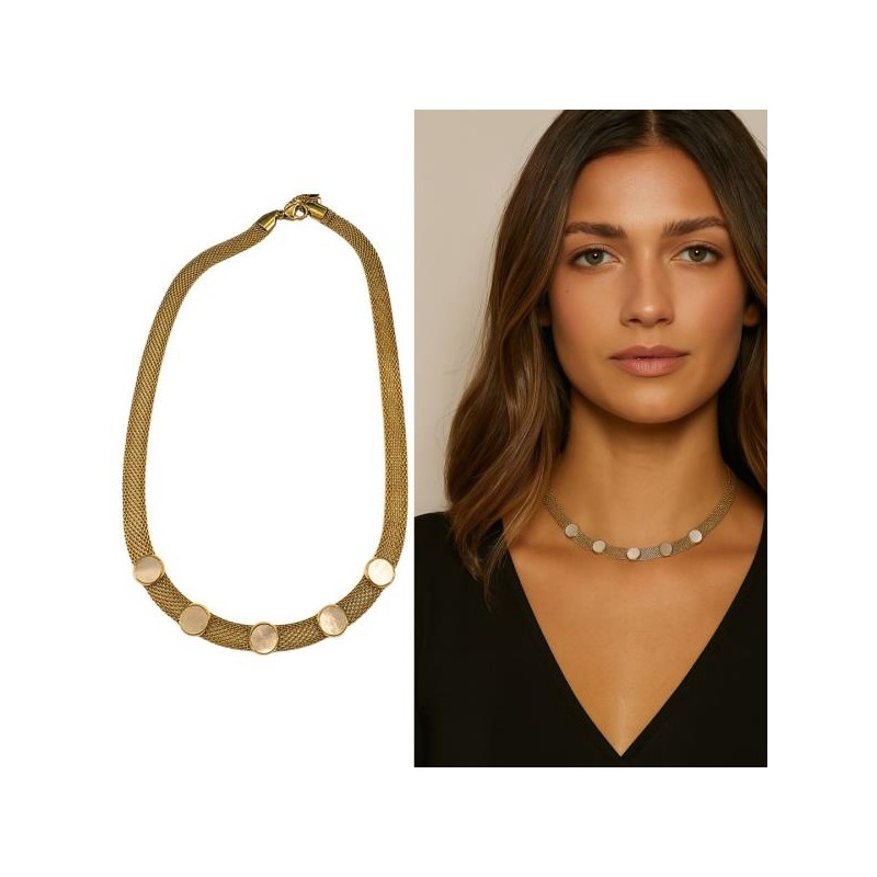 GARGANTILLA ACERO INOXIDABLE BAÑADA ORO 18K 4 PIEDRAS NACAR BLANCO EMBUTIDAS EN LA PIEZA 45 CM+5 CM
