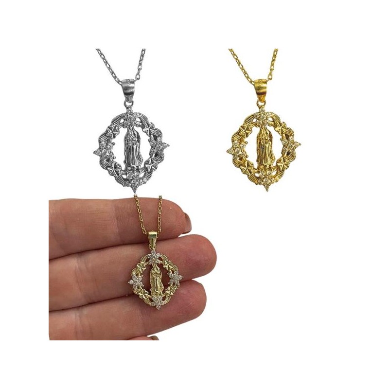 GARGANTILLA PLATA DE LEY COLGANTE VIRGEN DE GUADALUPE EN DOS ACABADOS:PLATA RODIADA Y PLATA BAÑANA EN ORO 18K