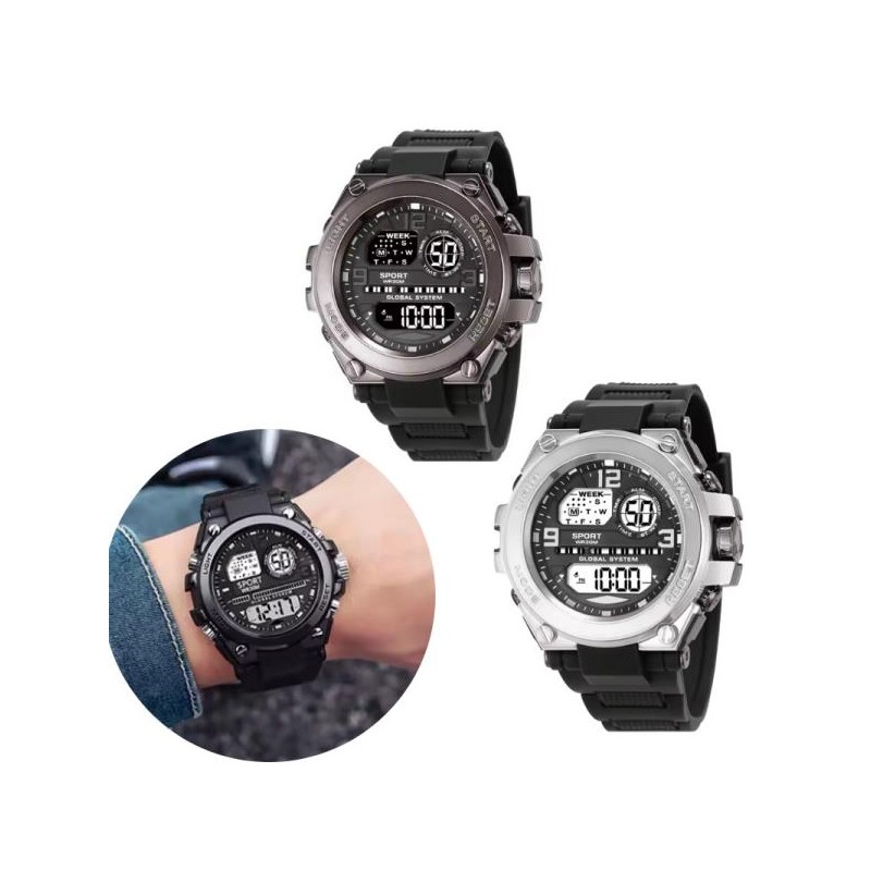 RELOJ CABALLERO DIGITAL CON LUZ, CALENDARIO, CRONOMETRO, CORREA DE 26 CMS, RESISTENTE A SALPICADURAS