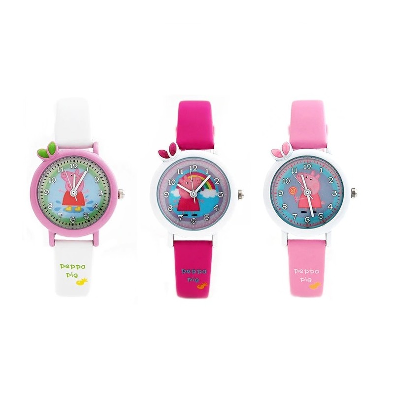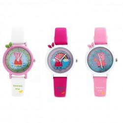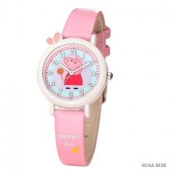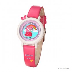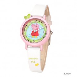 Reloj infantil de la Peppa Pig, con mecanismo japones. La caja del reloj está fabricada en acero lacada en rosa o blanco según el modelo. Correa fabricada en símil piel. Se entrega en estuche de regalo.