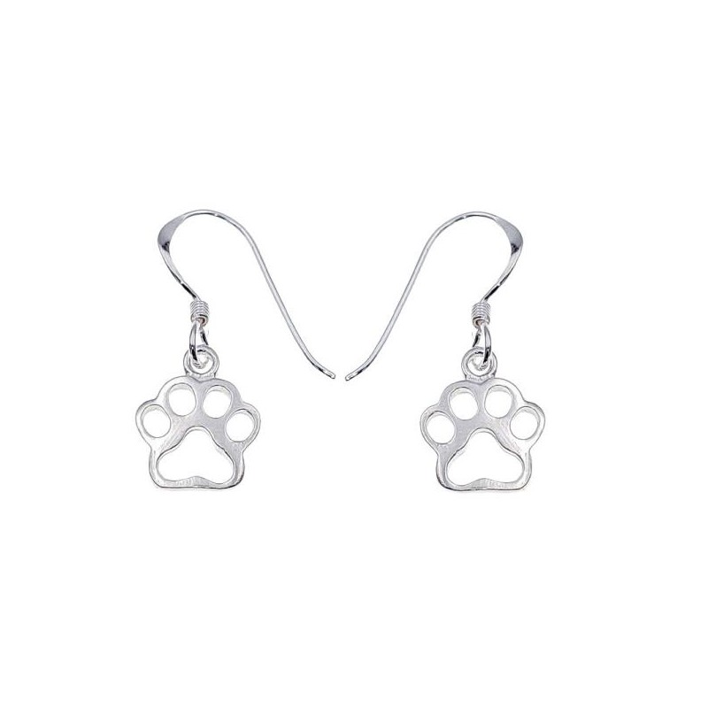Pendientes fabricados en plata de ley 925mm, con huella calada colgando de 11 mm de ancho y 22 mm de largo. Cierre estilo hippie. Se entregan en estuche de regalo.