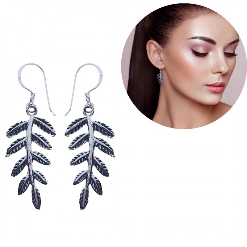 PENDIENTES PLATA DE LEY HOJAS COGIDA HIPPIE PLATA ENVEJECIDA