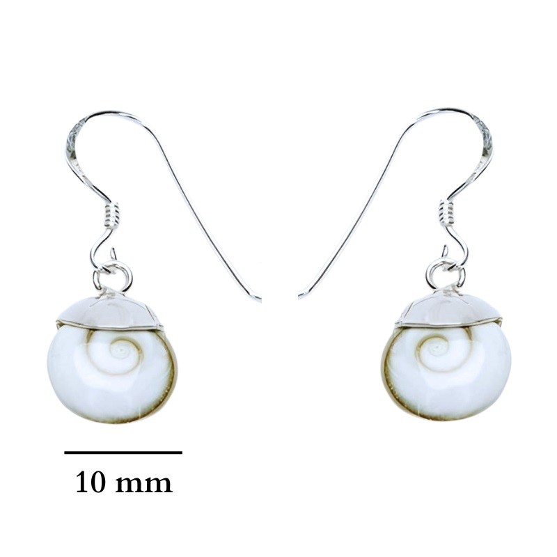 PENDIENTES PLATA DE LEY OJO DE SHIVA COGIDA HIPPIE CAPUCHON SUPERIOR DE PLATA, CONCHA DE 10 MM DIÁMETRO