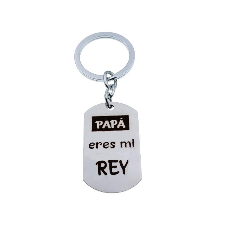 Llavero fabricado en acero inoxidable ``Papá eres mi REY´´ especial colección día del padre. Se entrega en estuche de regalo.