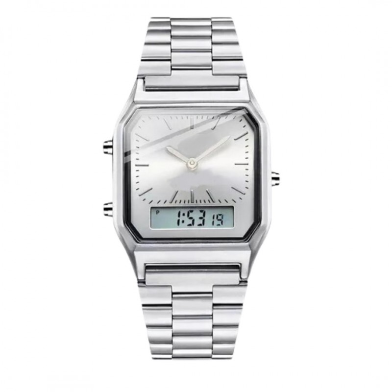 RELOJ UNISEX ACERO INOXIDABLE ANALÓGICO Y DIGITAL PLATEADO