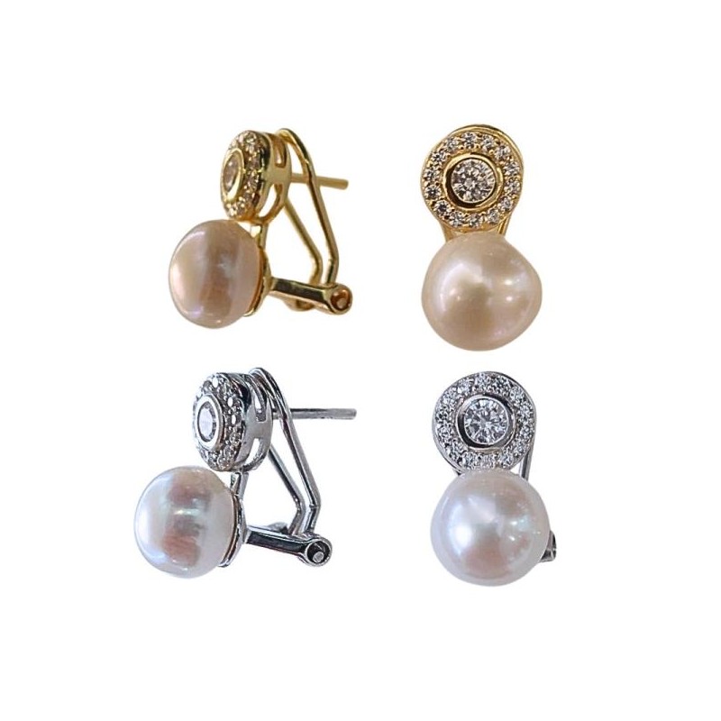 PENDIENTES PLATA DE LEY O BAÑADOS EN ORO DE 18K CIERRE OMEGA CIRCONITA REDNDA Y PERLA