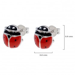 Pendientes fabricados en plata de ley 925 mm, en forma de mariquitas lacadas, con cierre de presión tipo mariposas. Estan huecas por la parte trasera lo que las hacen mas ligeras. El precio indicado es de una pareja. Se entregan en estuche de regalo.