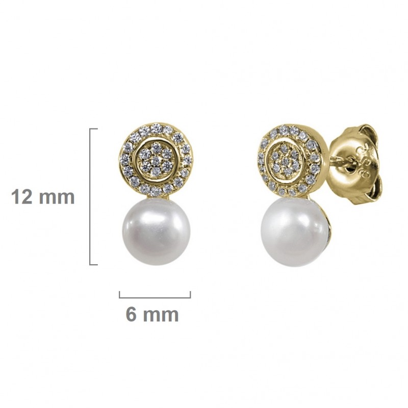 Pendientes fabricados en plata de ley 925 mm, bañados en oro de 18k. Cuentan con un cierre de tipo presión de mariposa, muy códomo y elegante. Se compone de una parte superior formada por circonitas blancas y una perla inferior de 6 mm de diámetro. Se vende, por separado, el anillo a juego. Ideal para ocasiones especiales como la Primera Comunión. Se entregan en estuche de regalo. Envío en 24-48 horas laborables.