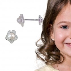 PENDIENTES PLATA CIERRE DE ROSCA ROSCA 6 MM DIÁMETRO FLOR PERLA