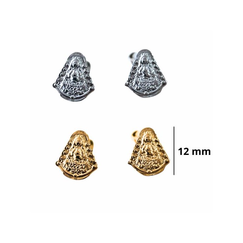 PENDIENTES ACERO INOXIDABLE DOS ACABADOS, VIRGEN DEL ROCIO, CIERRE DE PRESIÓN