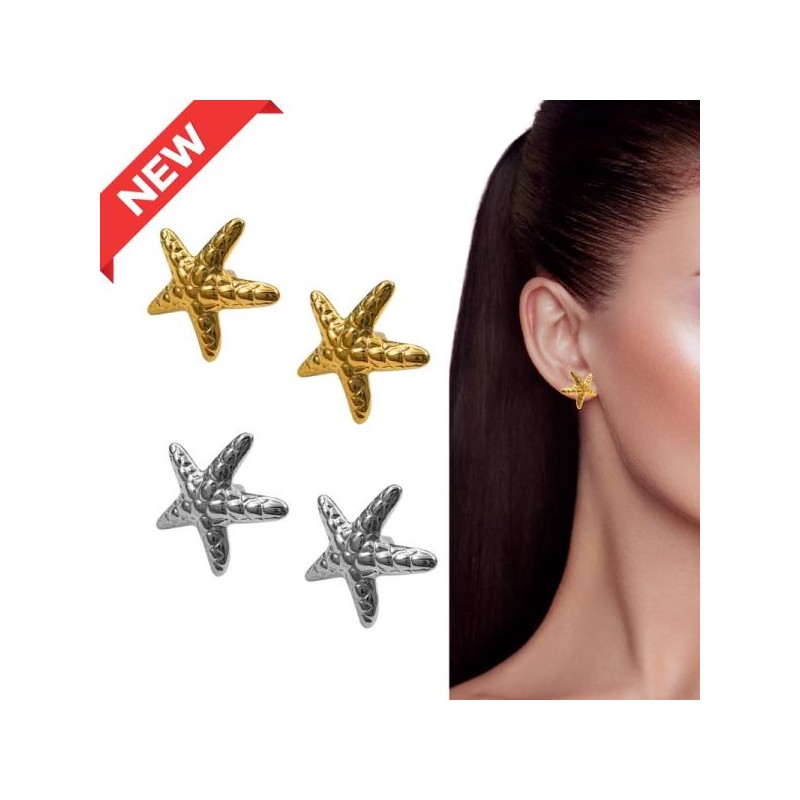 PENDIENTES ACERO INOXIDABLE ESTRELLAS DE MAR DE 2 CM ALTO Y ANCHO CIERRE DE PRESIÓN, DOS ACABADOS