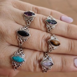 Anillo fabricado en plata de ley 925 milésimas con una piedra natural central ovalada a elegir en el momento de la compra. A elegir entre diferentes tipos de piedras y tallaje. Consultar tabla de tallas adjunta. Se entrega en estuche de regalo. Envíos rápidos en 24-72 horas laborables a penínsul.