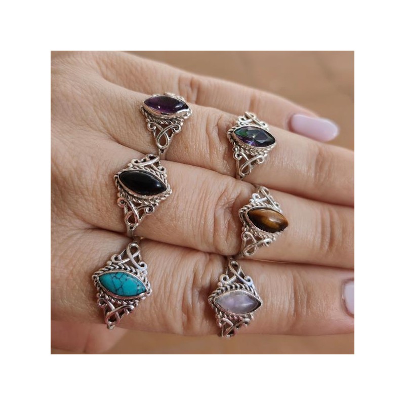 ANILLO PLATA DE LEY PIEDRA NATURAL OVALADA DIFERENTES PIEDRAS A ELEGIR