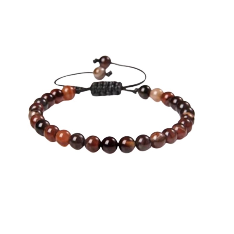 Pulsera fabricada en piedras naturales de 6 mm de diámetro con nudo corredizo, que permite adaptarse a cualquier medida. Piedra: Ágata marrón claro. Se entrega en estuche de regalo.