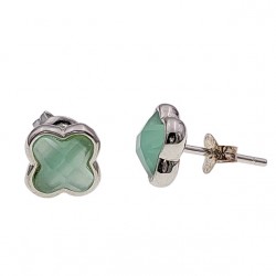 Pendientes fabricados en plata de ley 925 mm y recubrimiento de rodio que le aporta mayor brillo. La piedra central está facetada, y es un cuarzo verde. El cuarzo verde es denominado la piedra de la salud, ya que se cree que puede ayudarnos a calmar afecciones diversas que afectan a nuestro organismo