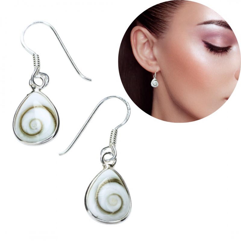 Pendientes fabricados en plata de ley 925 mm, de colgar, con la piedra de ojo de Shiva en su parte inferior y cogida de tipo hippie. Dimensiones: 14 mm de altura x 9 mm de anchura. Se entrega en estuche de regalo. Entregas rápidas en 24-72 horas laborables a península.