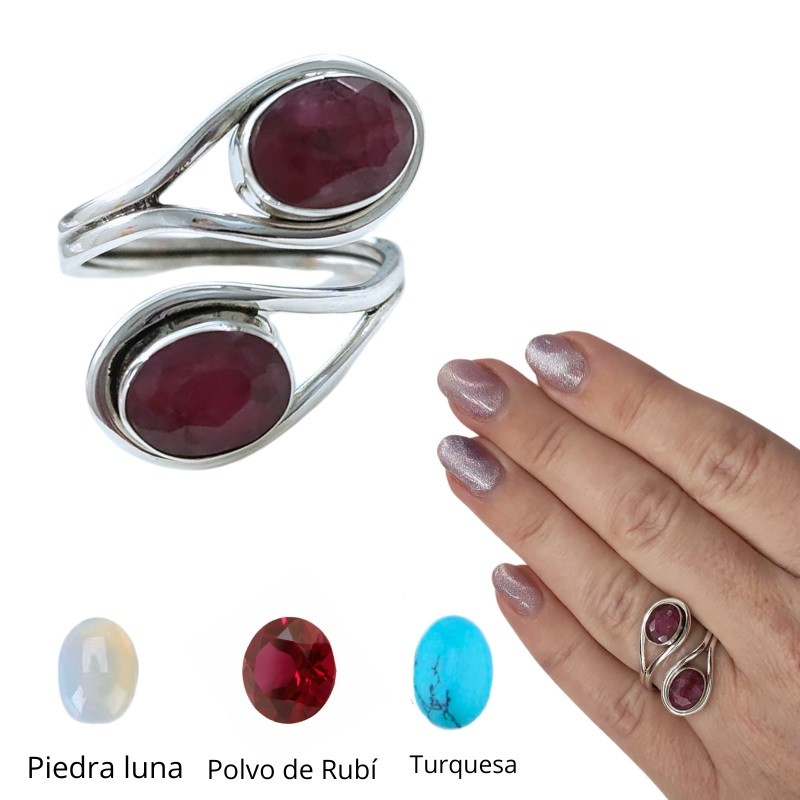 ANILLO PLATA DE LEY CRUZADO ADAPTABLE DOS PIEDRAS NATURALES, DIFERENTES PIEDRAS A ELEGIR