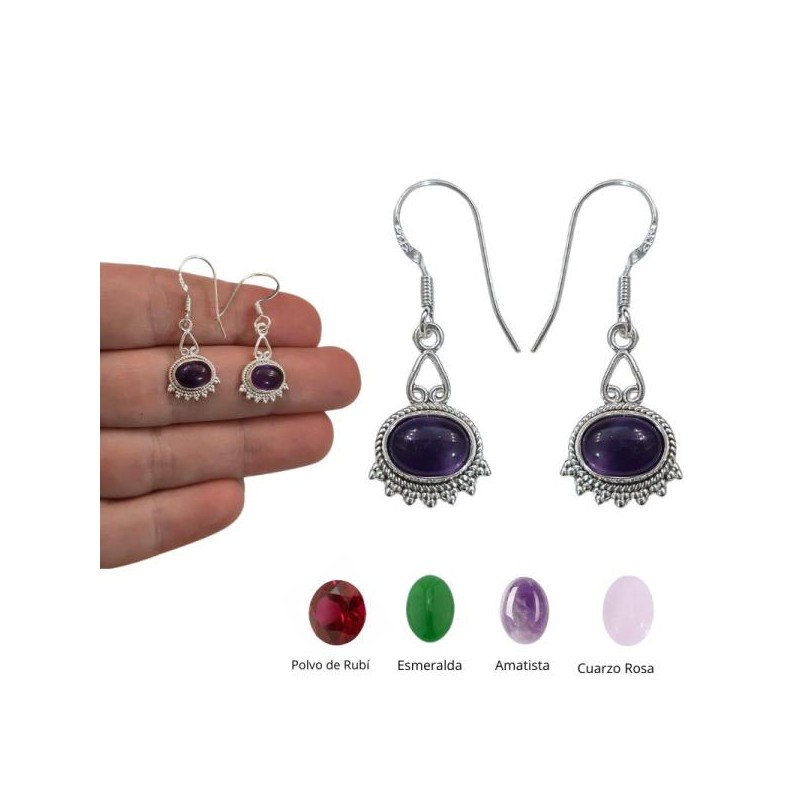PENDIENTES PLATA DE LEY COGIDA HIPPIE PIEDRA OVALADA PICOS INFERIORES DIFERENTES PIEDRAS A ELEGIR