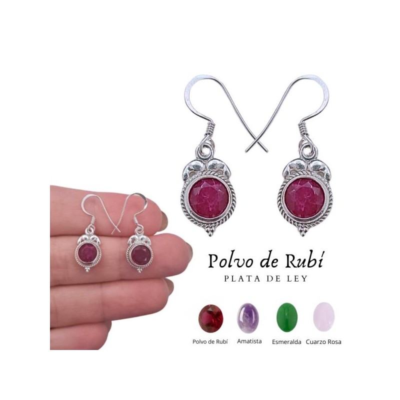 PENDIENTES PLATA DE LEY PIEDRAS NATURALES REDONDAS, COGIDA HIPPIE, FILIGRANA ALREDOR Y EN SU PARTE SUPERIOR DOBLE GRECA PEGADA A