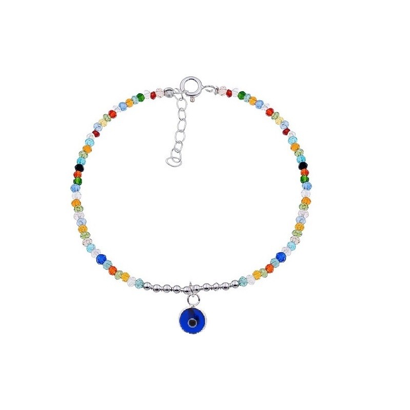 PULSERA PLATA DE LEY PIEDRAS COLORES OJO TURCO COLGANDO DE 6 MM DIÁMETRO
