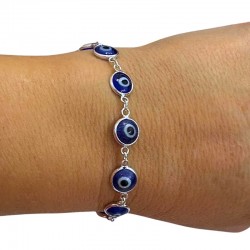 PULSERA PLATA DE LEY OJO TURCO AMULETO PROTECTOR 17 CM LONGITUD + 3 CM CADENA ALARGADORA
