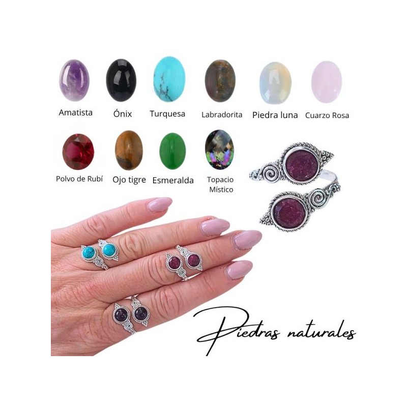 ANILLO PLATA DE LEY ADAPTABLE CON DOS PIEDRAS NATURALES