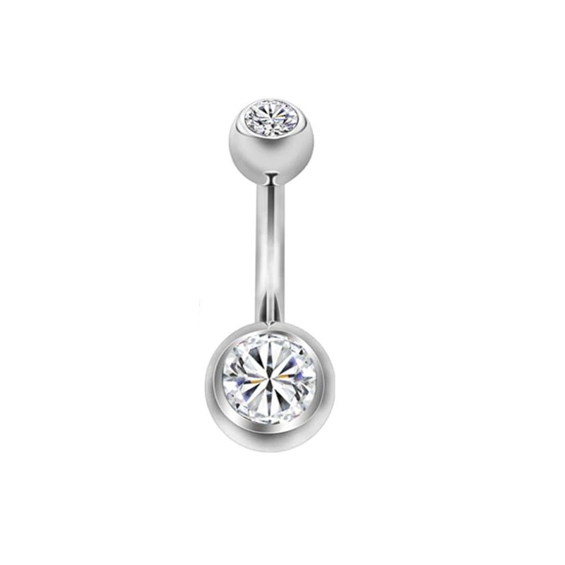 PIERCING ACERO OMBLIGO UNA BOLA CIRCONITA BLANCA