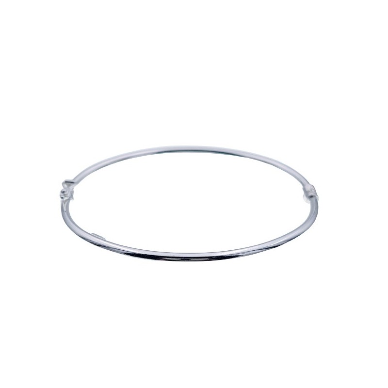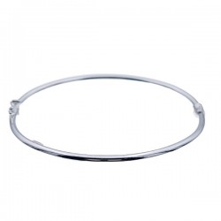 Pulsera fabricada en plata de ley 925 mm, rígida y con forma ovalada, cuenta con cierre de bisagra y clip de seguridad. De 4 mm de grosor, se ha diseñado en forma ovalada para mayor comodidad en su colocación. Se entrega en estuche de regalo.