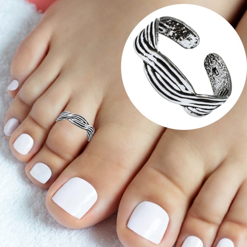 ANILLO PLATA DE LEY DEDOS PIES TRENZADO ENVEJECIDO ADAPTABLE