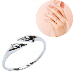 ANILLO PLATA DE LEY DOS CABEZAS DELFINES CRUZADAS ADAPTABLE