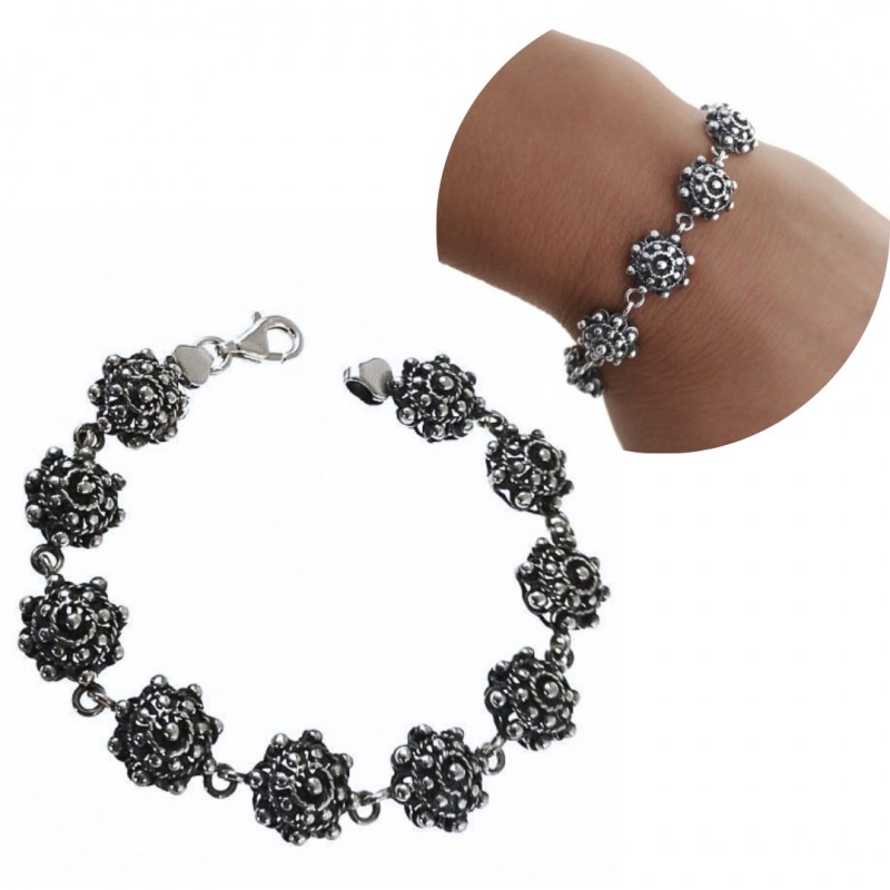Pulsera fabricada en plata de ley 925 mm, con eslabón tipo botón charro de 11 mm de diámetro. Longitud total 19 cms. Se entrega en estuche de regalo. Entregas rápidas en 24-72 horas laborables a península.