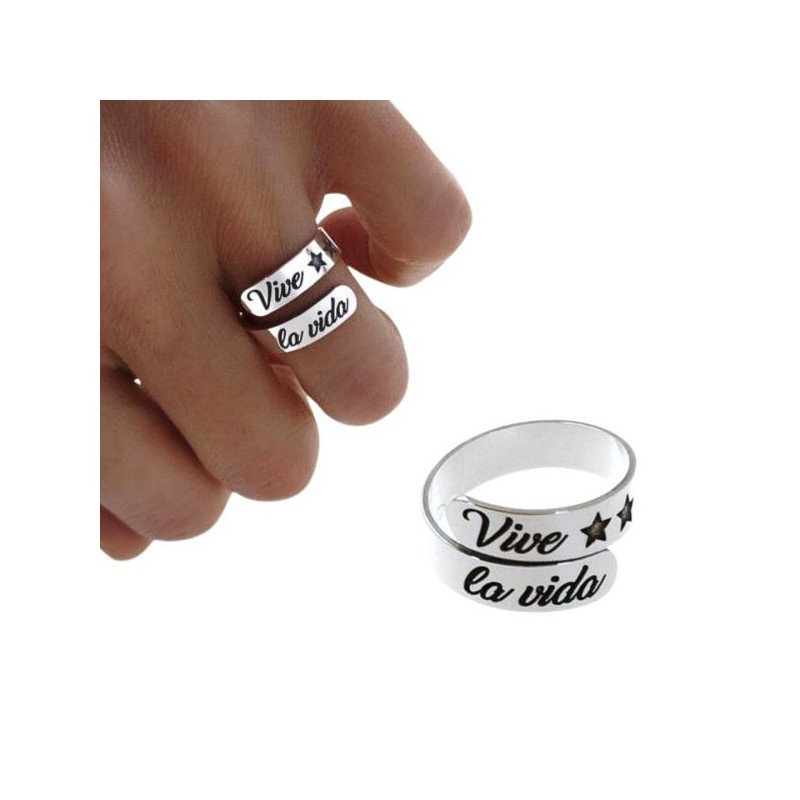 ANILLO PLATA DE LEY ADAPTABLE MENSAJE: VIVE LA VIDA
