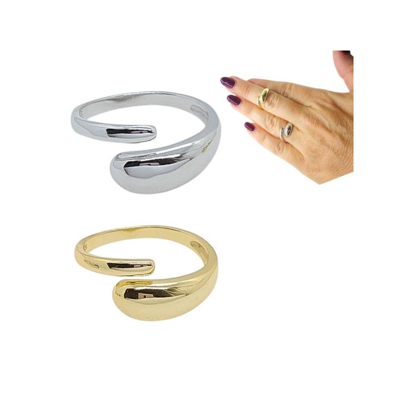 ANILLO PLATA DE LEY ENROLLADO EN EL DEDO SIMIL GOTA EN UNO DE LOS EXTREMOS, DOS ACABADOS: BAÑADO EN RODIO Y BAÑADO EN ORO DE 18K